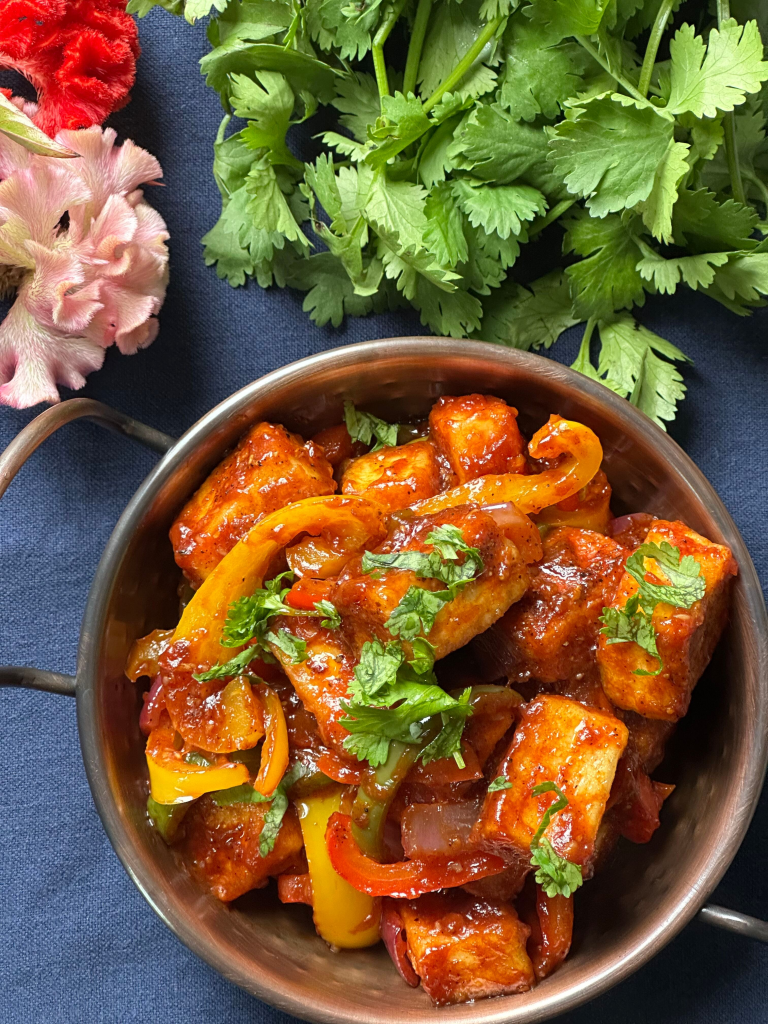 Occasionally just the two of us, often with family, sometimes as he held business meetings, I would relish every moment spent in his shadow chewing down batter-fried paneer tossed in a spicy, sweet, and tangy sauce. I have recreated and modified my mum’s semi-dry version of Chilli Paneer.