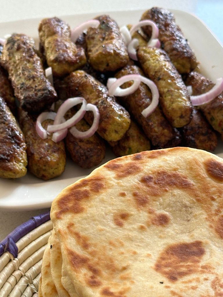My MaaIL used to call these pan fried yeasted naans Khameer wari rotli. Khameer wari rotli only appeared when she made the Sekela Kababs, and even though she called it rotli, this was not rotli, it’s a pan fried naan of sorts.