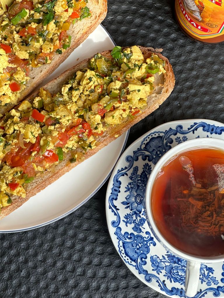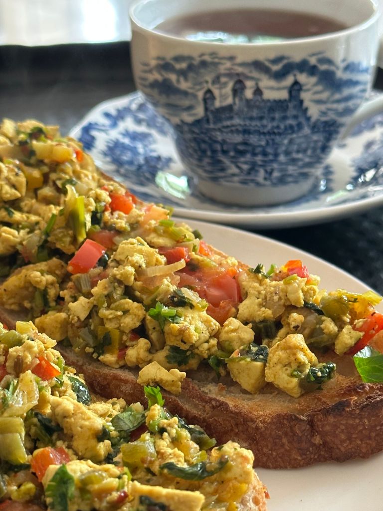Curried tofu scramble {Vegan & Gluten-Free} is my guilt-free breakfast on the weekends. It’s a fantastic plant-based replacement for scrambled eggs (my relationship with eggs boiled, scrambled, or otherwise is tainted), protein-packed, and satisfying.