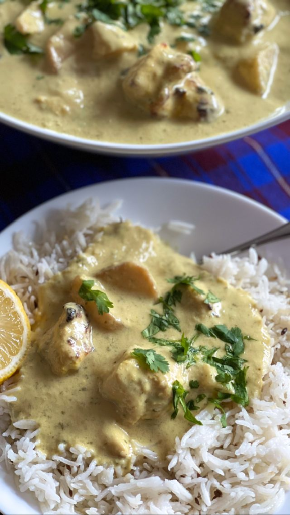 I still make it the way my Mum taught me, and the way she made it for my kids, adding the chicken directly to the sauce, if I am feeling fancy I will air fry the chicken breasts to give it that char. I keep the sauce thick and creamy and the only flavors that jump out are the fresh lime juice and cilantro.