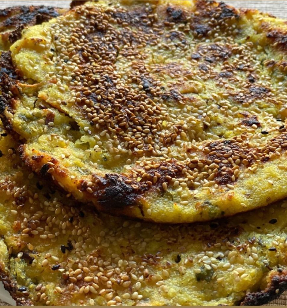 Gujarati Dangella/Tawa Ondhwo is thick pan-fried pancake that is made with fermented Hondwo batter, instead of baking it.