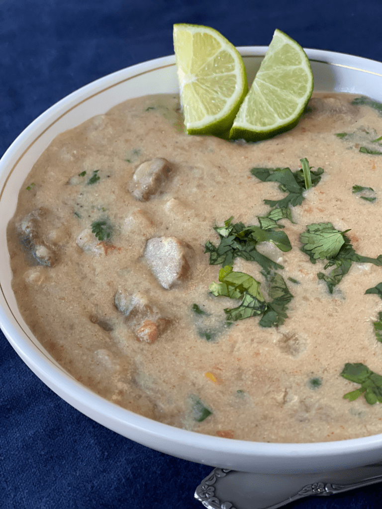 - Add the cream of coconut milk and mix well. Let it t simmering on a low heat, then add lime juice and cilantro. Serve with additional lime wedges.