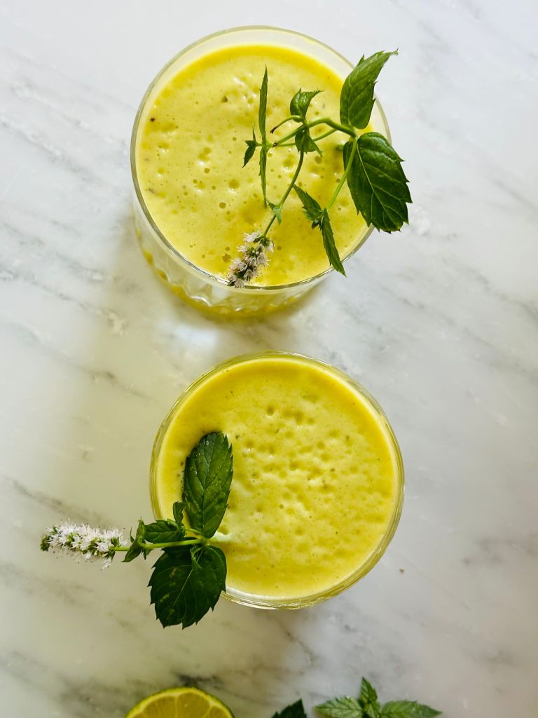 Pineapple and mint pair as naturally as idli and sambhar. My version is heavy on the mint, so if you’re not a fan, feel free to scale it back. The mint beautifully softens the tart acidity of lime, and with no added sugar, it relies solely on the sweetness of a perfectly ripe pineapple, creating a delightful lime-infused juice with a bright, bold mint finish. It’s refreshingly light and incredibly delicious. Make this guilt-free treat that’s as kind to your body as it is to your taste buds.