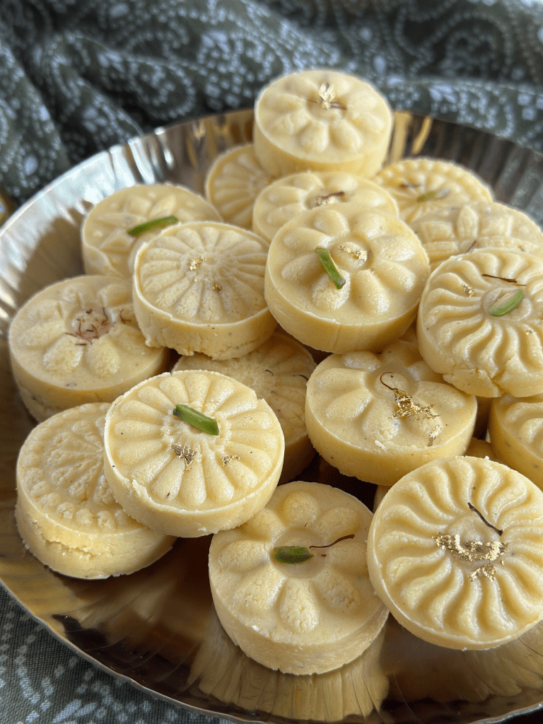 And because grannies would not let us eat anything before the evening temple offering, for me it was the agonizing wait for Prasad sitting criss crossed leg next to my grannie for an hour at the temple hoping to get a whole penda to myself and they praying they would not break it in half because I was a kid, I usually pinched Grannie’s either way.