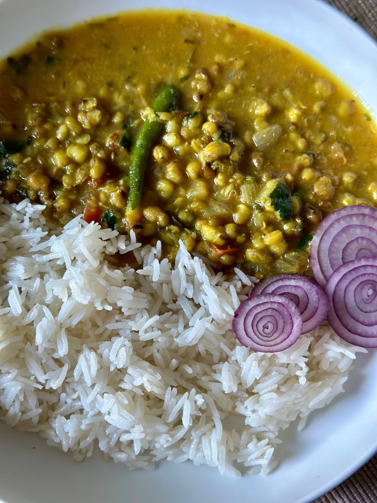 This Mag nu shaak is a homely curry, not featured in any restaurant menu but the kind of lentil curry served on a regular basis if you grew up eating in a Gujarati home.