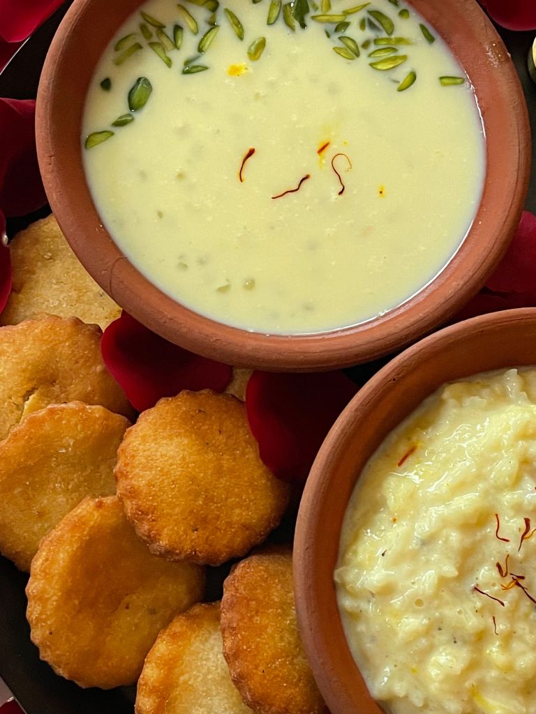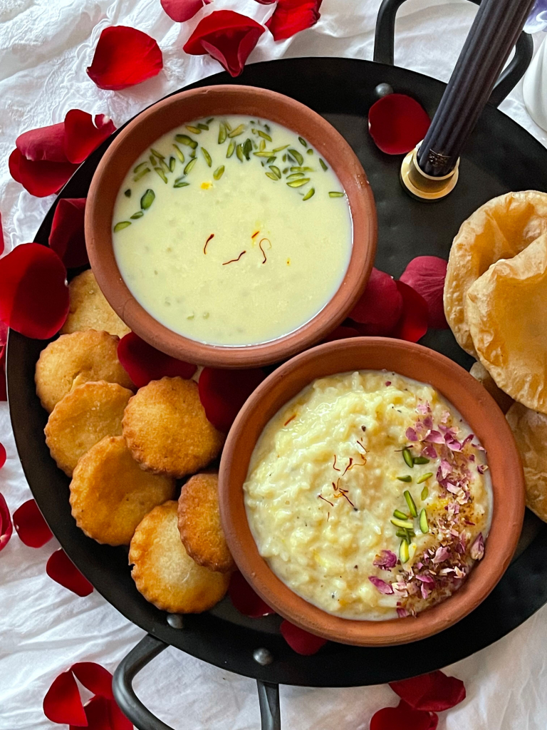 Here is the puri, Gujarati Kheer, Sabudana Kheer and the Kheer with Mithi Tikkya recipes.