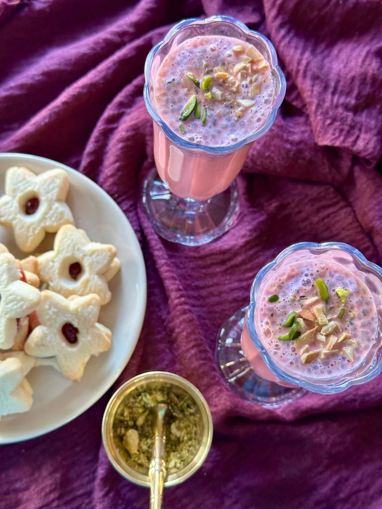 On the hottest afternoons, we’d gulp it down, the bloomed basil seeds bursting between our teeth, each sip leaving behind the delicate floral notes of rose. We would scream in glee that we were having frog eggs or baby tadpoles! My sibling, friends and I would peer into our glasses, swirling our spoons through the pink milk speckled with tiny seeds, daring each other to drink it first—half thrilled, half horrified at our own imagination. Of course, we knew better—but in the world of childhood imagination, a simple glass of Sharbat could turn into the most thrilling adventure.